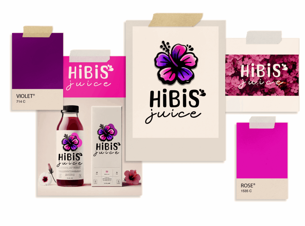 Hisbis Juice est une nouvelle marque de jus et produits dérivés à base d’hibiscus. Le projet nécessitait la création d’une identité visuelle complète de A à Z, reflétant les valeurs naturelles